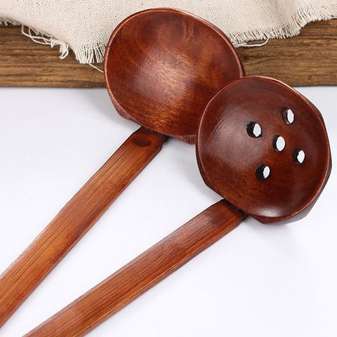 निर्माता लकड़ी की करछुल हॉट पॉट कोलंडर अष्टकोणीय चम्मच नानमू पुराना लाह पाउडर सूप चम्मच