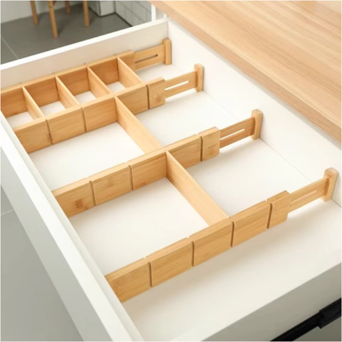 Set di 4 cassetti regolabili divisori per cassetti in bambù espandibile Organizer per cassetti e posate Premium