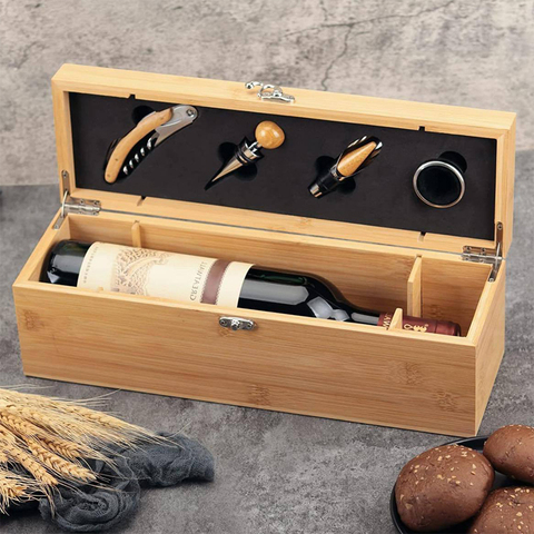 Festa del papà regali di vino per gli uomini papà regali di bambù cassa di vino con strumenti Set scatola di vino con 4 accessori Set