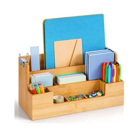 Forniture Organizer da scrivania in bambù con manico, matita per ufficio e libro HolderWood scrivania Organizer e accessori