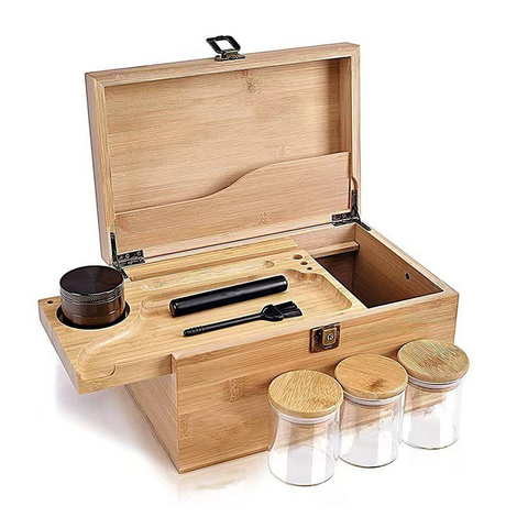 Accessori in legno Kit Organizer contenitore scatola da fumo a prova di odore scatola Stash di bambù all'ingrosso vassoio di laminazione fumo