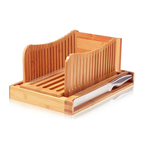Tagliere per il pane in legno di bambù con Set di coltelli in acciaio inossidabile e affettatrice per il pane