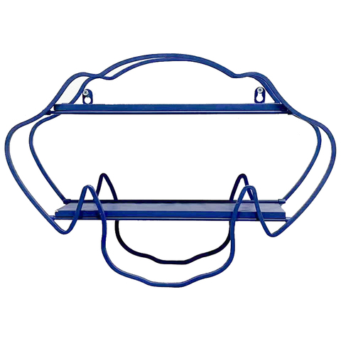Настенная полка из синего металла с прочной железной структурой и двойными уровнями хранения для современного домашнего декора