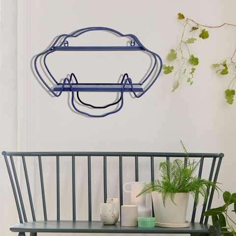 رف زخرفي حديد أزرق مع تصميم هندسي لتخزين جدران المكاتب أو المداخل