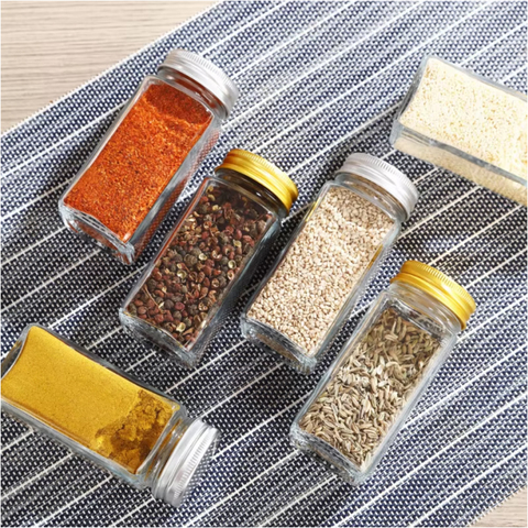 Frascos de especiarias de bambu personalizados para atacado, recipientes quadrados para especiarias, garrafa de vidro à prova de umidade com tampa de bambu