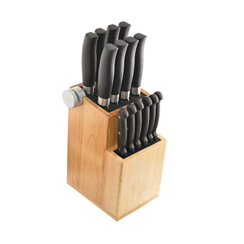 Organizador de armazenamento de facas, suporte de facas em bambu de 2 camadas com 2 afiadores embutidos